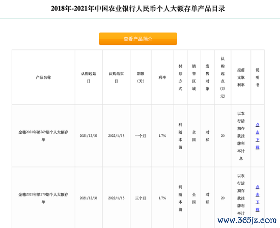 记者查询发现,农业银行官网披露了2018年以来人民币个人大额存单产品目录,其中并未出现5年期产品的身影。