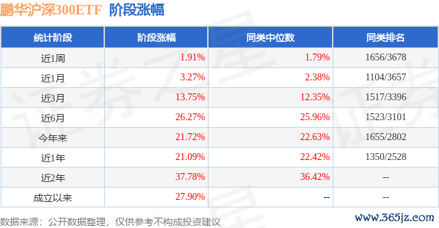 从业绩表现来看,鹏华沪深300ETF基金过去一年净值涨幅为10.19%,在同类基金中排名1200/2216,同类基金过去一年净值涨幅中位数为11.09%。而基金过去一年的最大回撤为-15.17%,成立以来的最大回撤为-20.32%。