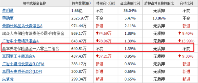 一季度,基本养老保险基金一六零三二组合,依然持有公司640.51万股,位列第六大流通股东。