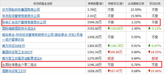 而在目前41家军工预增公司中,有4家正宗军工企业,获得了中央汇金、大佬葛卫东,以及社保基金的重仓。