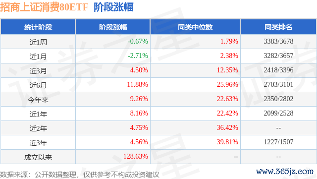 从业绩表现来看,招商上证消费80ETF基金过去一年净值涨幅为1.67%,在同类基金中排名1709/2216,同类基金过去一年净值涨幅中位数为11.09%。而基金过去一年的最大回撤为-20.32%,成立以来的最大回撤为-54.44%。