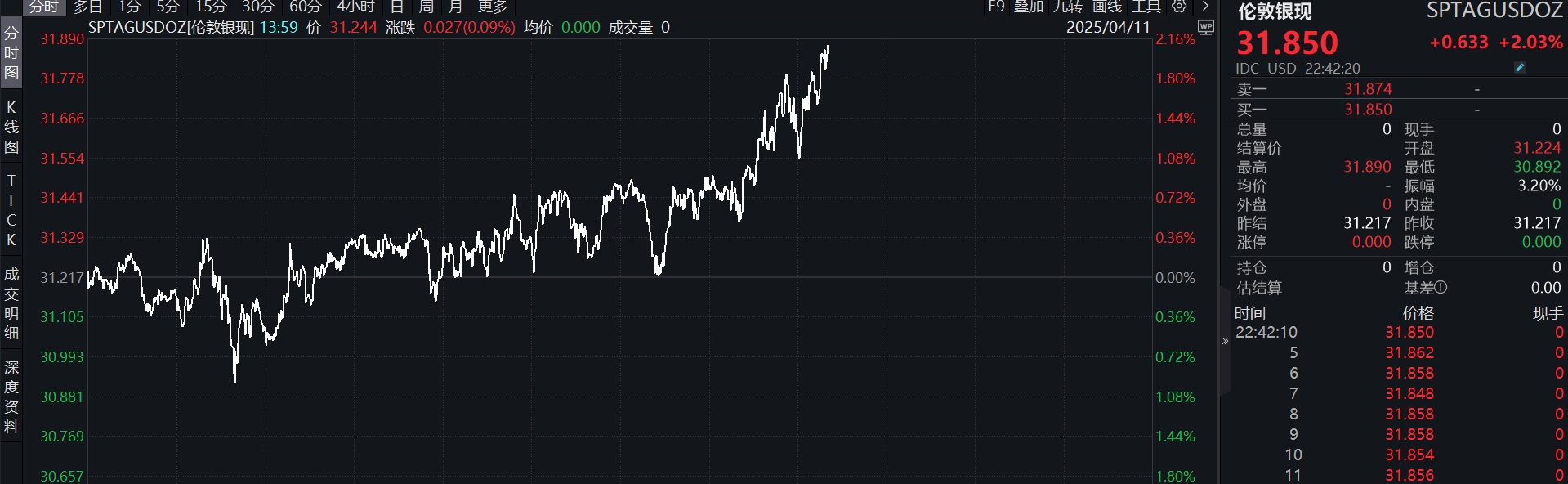 22:59 现货白银站上32美元/盎司,为4月3日以来首次,日内涨2.6%。