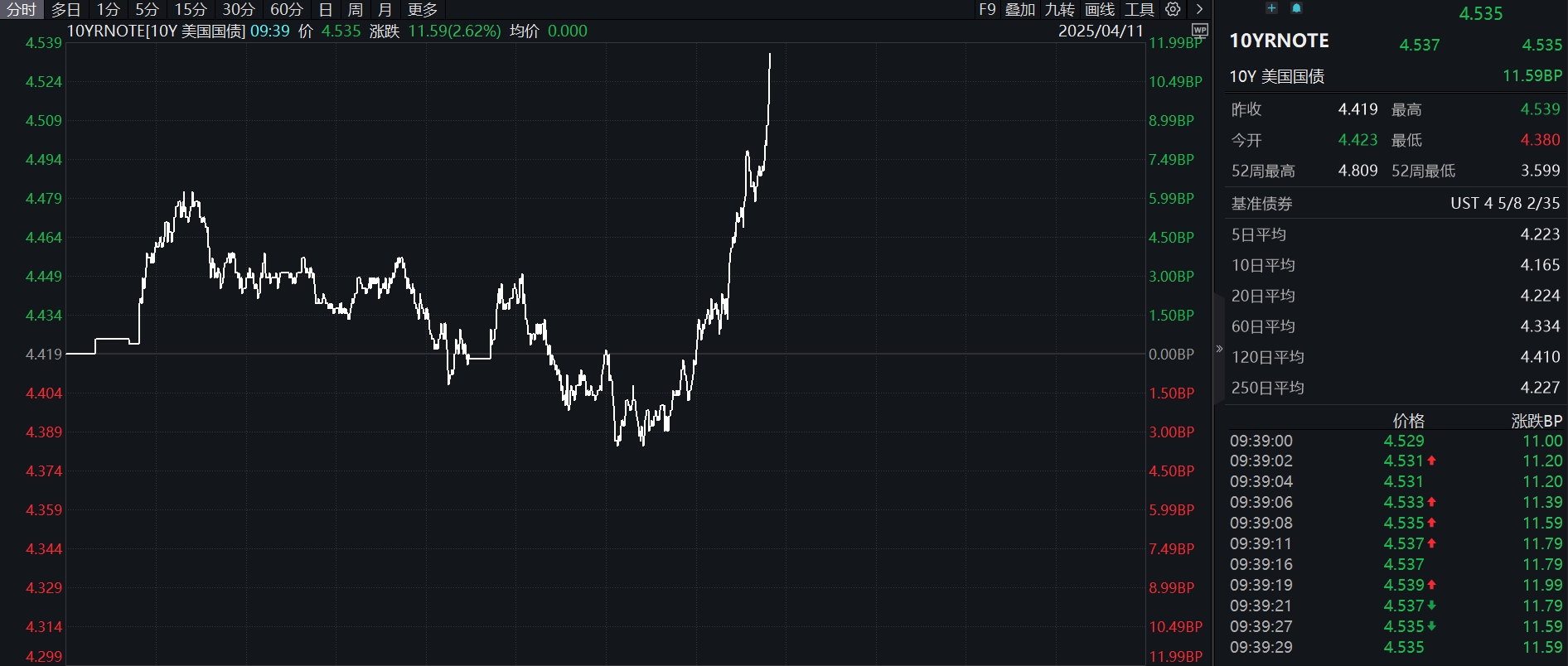 21:39 10年期美债收益率站上4.5%,为2月中旬以来首次。