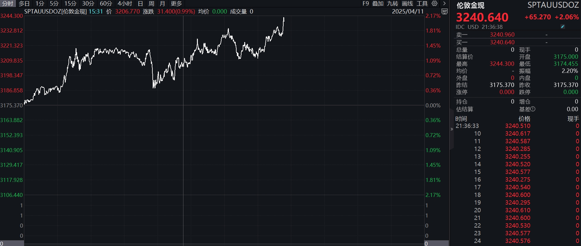 现货黄金短线拉涨,突破3240美元/盎司,刷新历史新高,日内涨超2%。